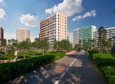 Пространство дворов разделено на функциональные зоны: детские площадки для разных возрастных групп с безопасным современным покрытием и игровыми комплексами, площадки для игр в баскетбол и мини-футбол, аллеи для прогулок, газоны, беседки и лавочки в тени деревьев.