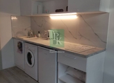 Апартаменты расположены в одноэтажном корпусе, общая площадь 19.4 м2. Комната - студия со свежим ремонтом, зона кухни включает в себя современную технику, мебель, холодильник.