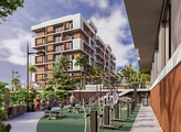 Вокруг здания и на крыше блока есть места для отдыха с скамейками, клумбами и садовой мебелью. На территории есть спортивная и детская площадки - одна для младших детей, другая для постарше.