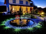 Участок с авторским ландшафтным дизайном, освещенными дорожками, декоративным прудом с карпами кои.